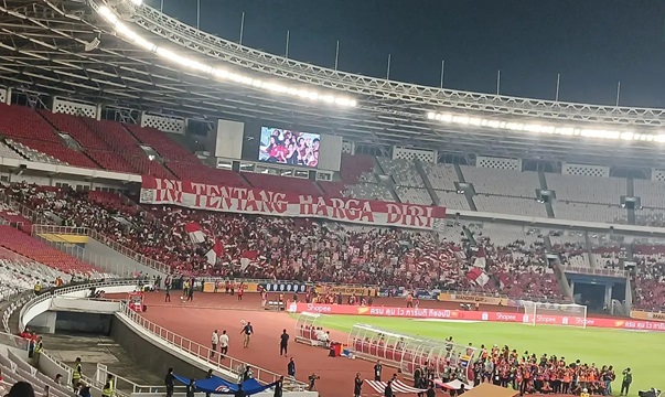 Khi đối đầu với U23 Malaysia, tình hình tại SVĐ Gelora Bung Karno có vẻ đông đúc hơn hẳn. Thậm chí, ở phía khán đài Bắc, một biểu ngữ lớn đã được giương lên bởi hội cổ động viên La Grande Indonesia.