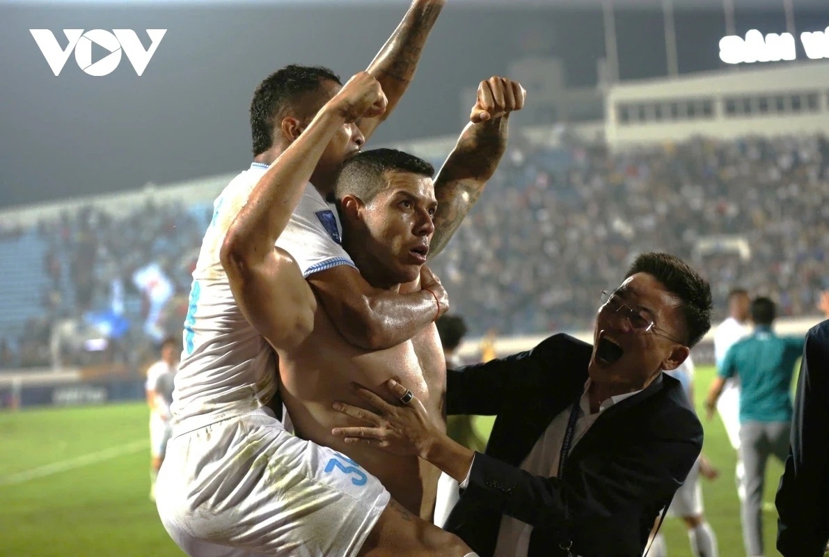 Nam Định ngược dòng ngoạn mục. Ảnh: VOV.Trận đấu càng trở nên căng thẳng khi Nam Định dâng cao đội hình, nhằm tìm bàn thắng quyết định. Trong những phút bù giờ cuối cùng, một tình huống phạt góc của Lucas Silva đã gây hỗn loạn trong vòng cấm Tampines. Trung vệ Lucas Araujo kịp thời băng vào, dứt điểm tung lưới đội khách ở phút 90+5, mang về chiến thắng nghẹt thở 3-2 cho đội chủ sân Thiên Trường.Với kết quả này, Nam Định có 8 điểm sau 4 trận, đứng thứ hai bảng G và tạm bỏ xa Tampines Rovers 4 điểm. Chỉ cần thêm một chiến thắng nữa, thầy trò HLV Vũ Hồng Việt sẽ chính thức vượt qua vòng bảng Cúp C2 châu Á. Tại V-League, họ đang đứng ở vị trí thứ sáu, nhưng cũng chỉ kém 1 điểm so với ba đội dẫn đầu là Công An Hà Nội, Thanh Hóa và Viettel.