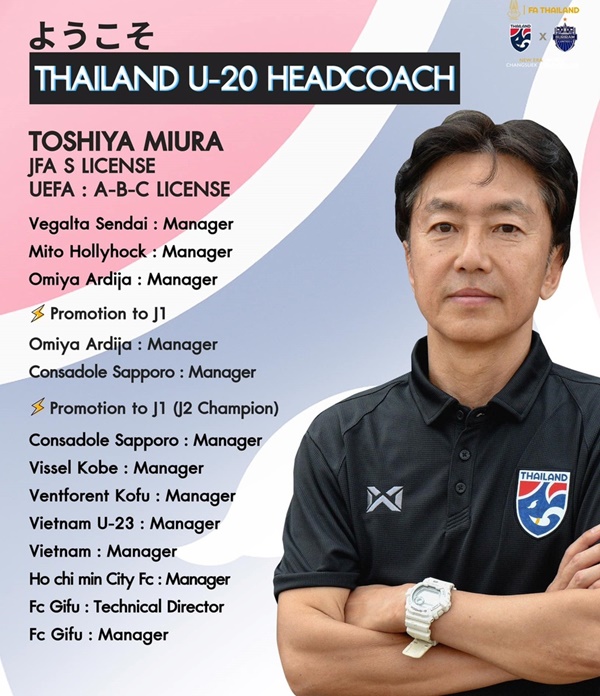 Hồ sơ ông Toshiya Miura khi được bổ nhiệm làm HLV U20 Thái Lan.