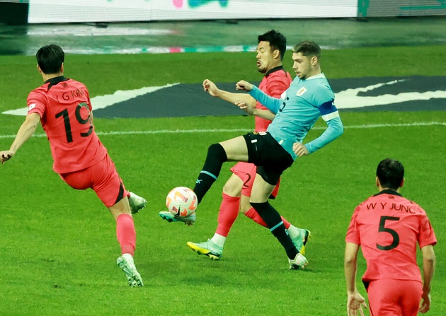 Tối nay, Hàn Quốc gặp một đại diện Nam Mỹ khác là Uruguay. Nhưng lần này đội chủ nhà đã không có khởi đầu thuận lợi nữa. Họ thủng lưới ở phút thứ 10. Fede Valverde thực hiện quả phạt góc, bóng hướng đến chỗ Sebastian Coates và Uruguay có bàn mở tỷ số.